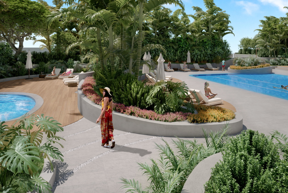- Multiple pools, cabanas, and landscaped relaxation areas