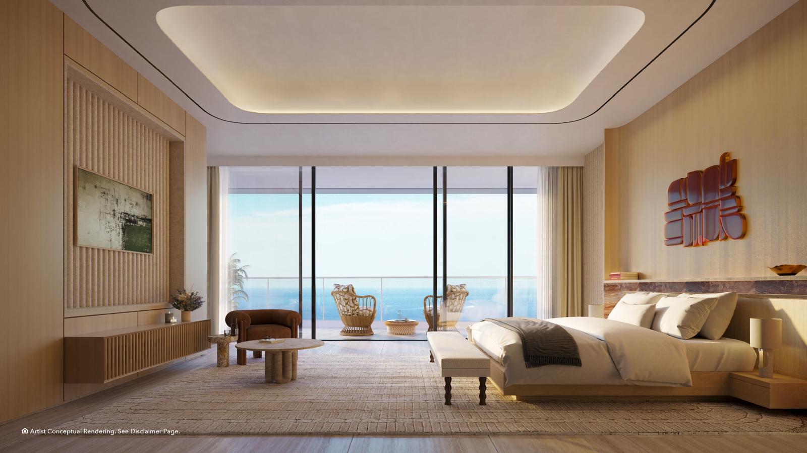 - Floor-to-ceiling glass opening to 12-foot-deep private terraces